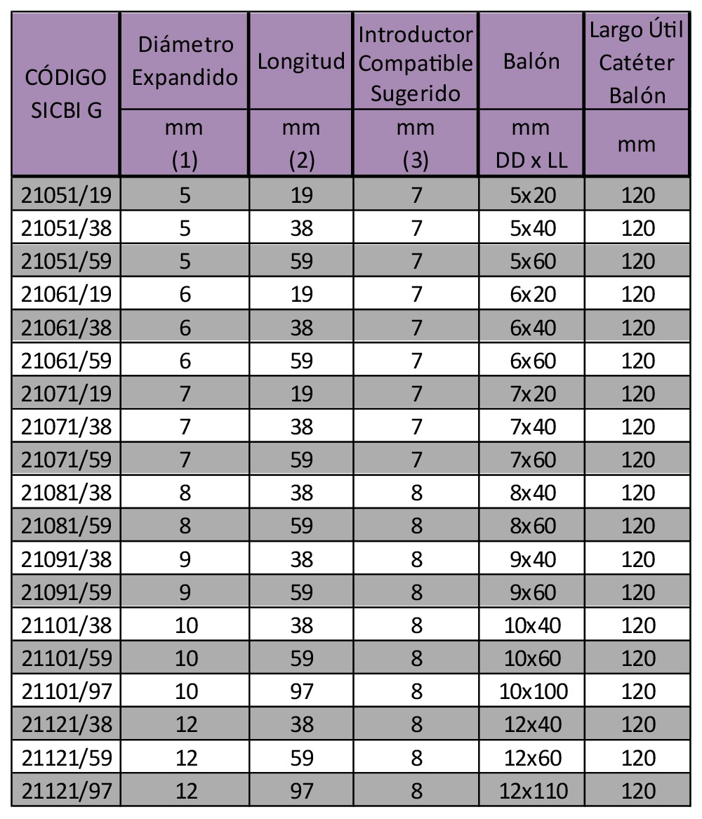sido sometido a este proceso. Cada SICBI G con su catéter balón