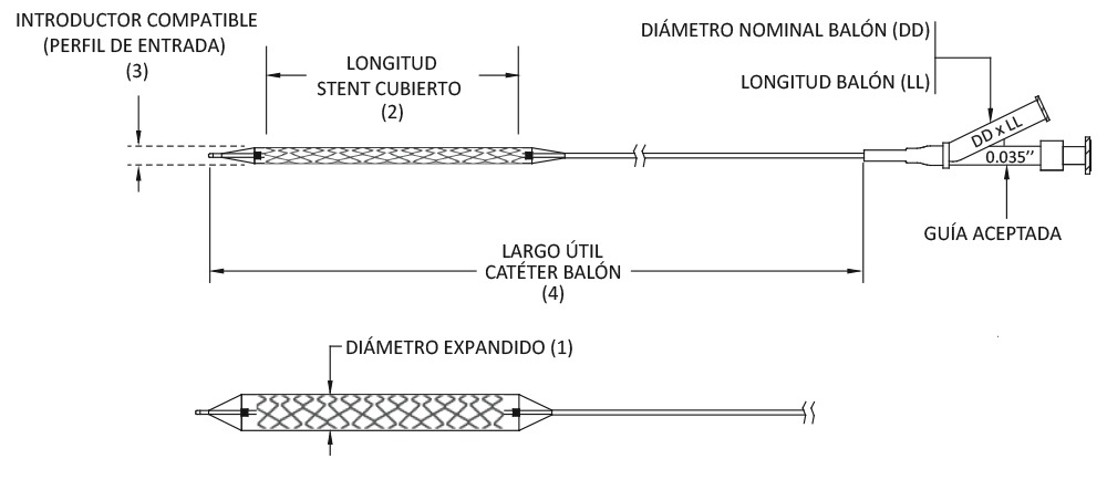 Stent de acero inoxidable con cobertura interna y externa de PTFE - Bajo perfl de ingreso (7 Fr y 8 Fr)